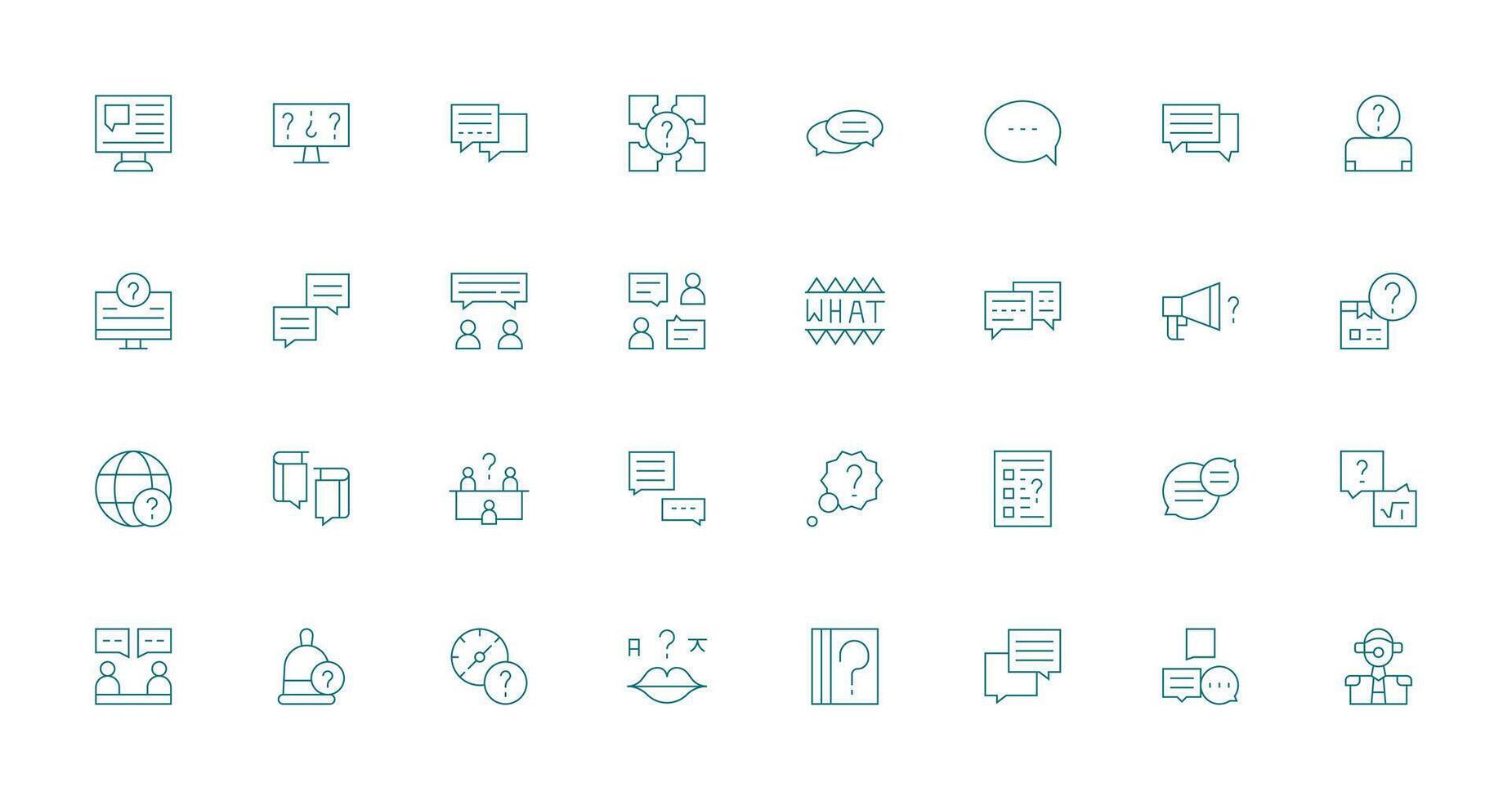 32 Thin Line Style Icons from Question Collection Interface Icon Collection for Daily Projects Free Vector