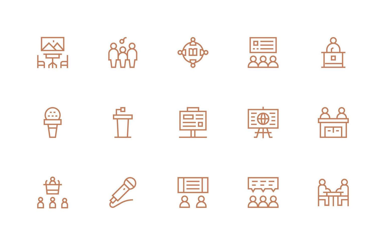 15 Icons for Seminar in Regular Line Format Icon Set for Web vector
