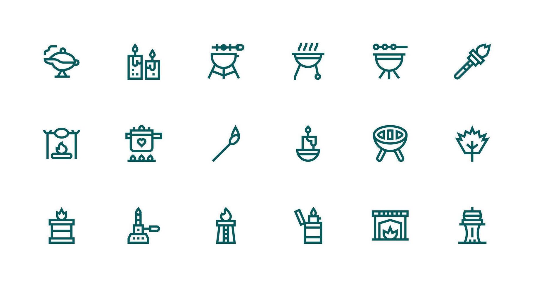 18 Strong Stroke Line Icons for Flame Graphics Clean Icon Collection for Web Use vector