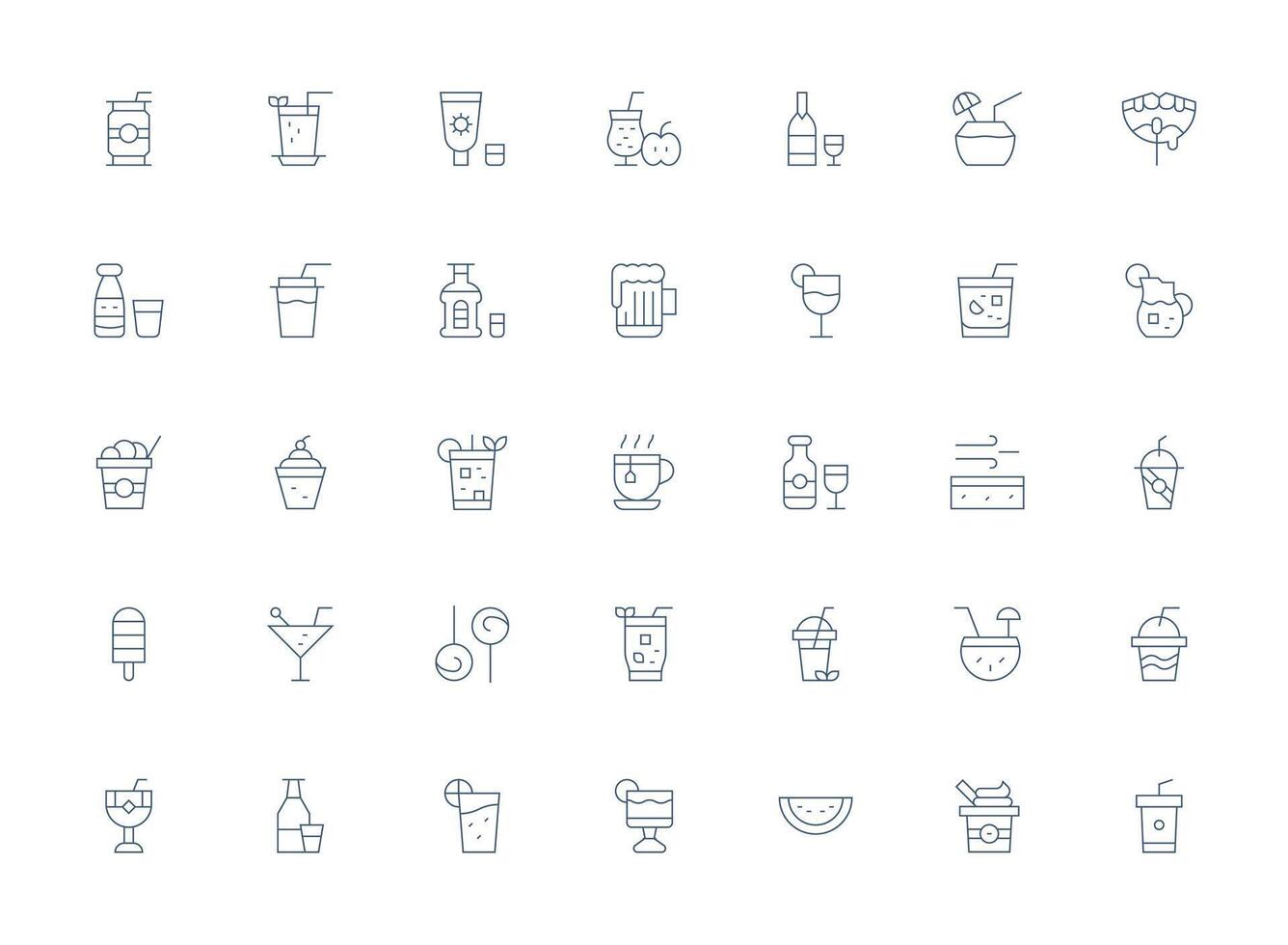 Light Line Icons from Refreshment Set with 35 Vectors Editable Icon Collection