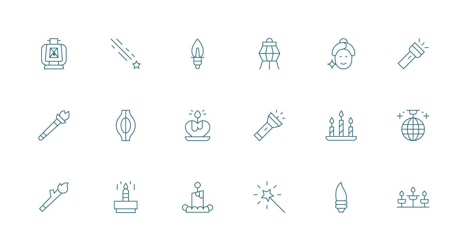 Glow Icon Set with 18 Minimal Line Graphics Modern Icon Set vector