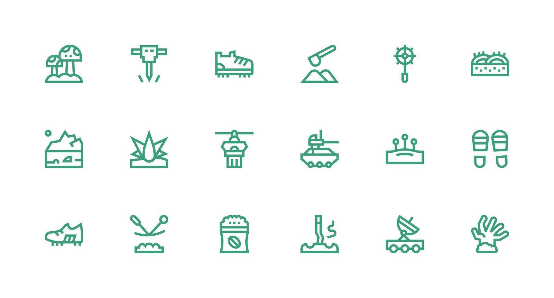 18 Strong Stroke Line Icons for Ground Graphics Full Icon Library for UI Designers vector