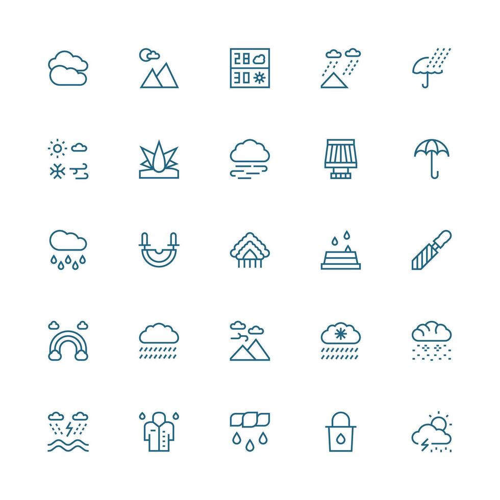 Medium Stroke Outline Style Rain Icons with 25 Vectors UI-Ready Icon Collection Free Vector