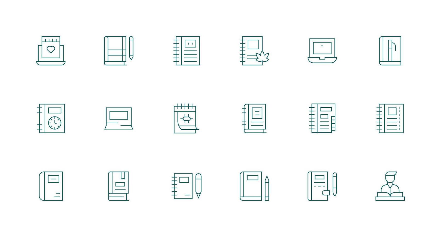 Notebook featuring 18 Icons in Minimal Line Design Organized Icon Pack for Quick Access vector