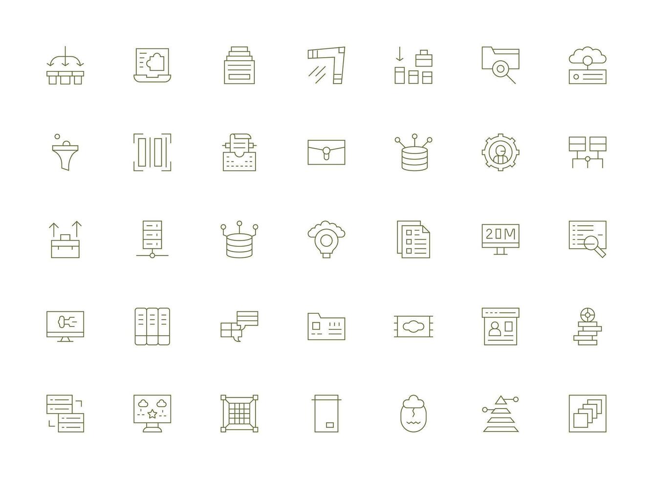 35 Light Line Style Icons from Data Management Collection Complete Icon Bundle for Web Design vector
