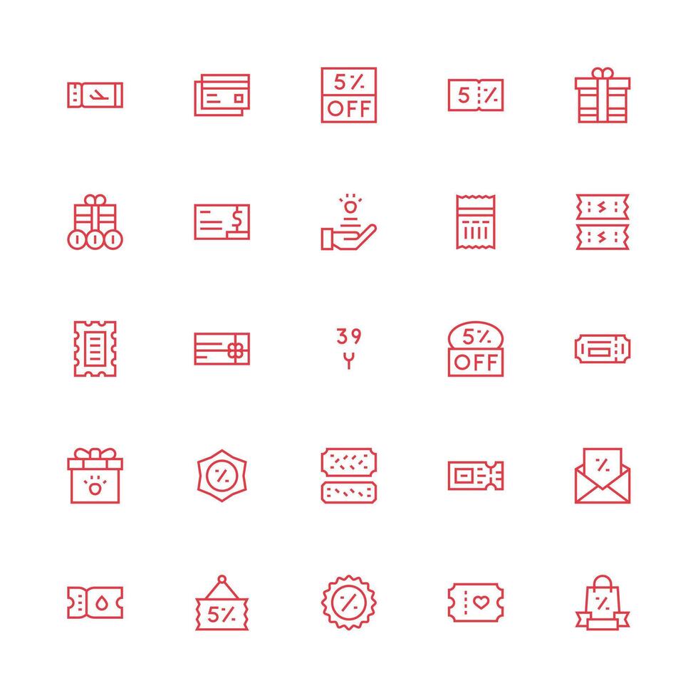 25 Medium Stroke Outline Style Icons from Voucher Collection UI Icon Set Free Vector