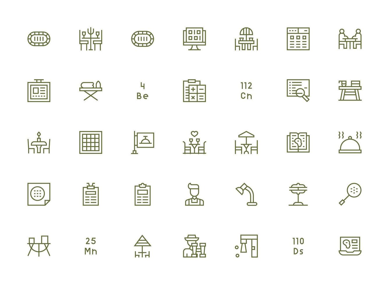Table Visual Pack containing 35 Regular Clean Line Icons Quick Access Icons for UI Development Free Vector