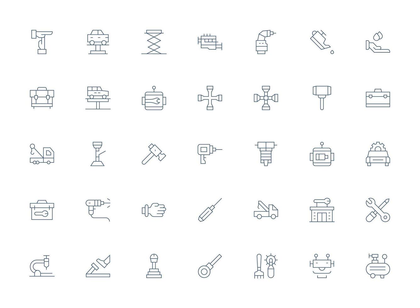 Light Line Style Mechanic Icons with 35 Vectors Icon Set for Projects Free Vector