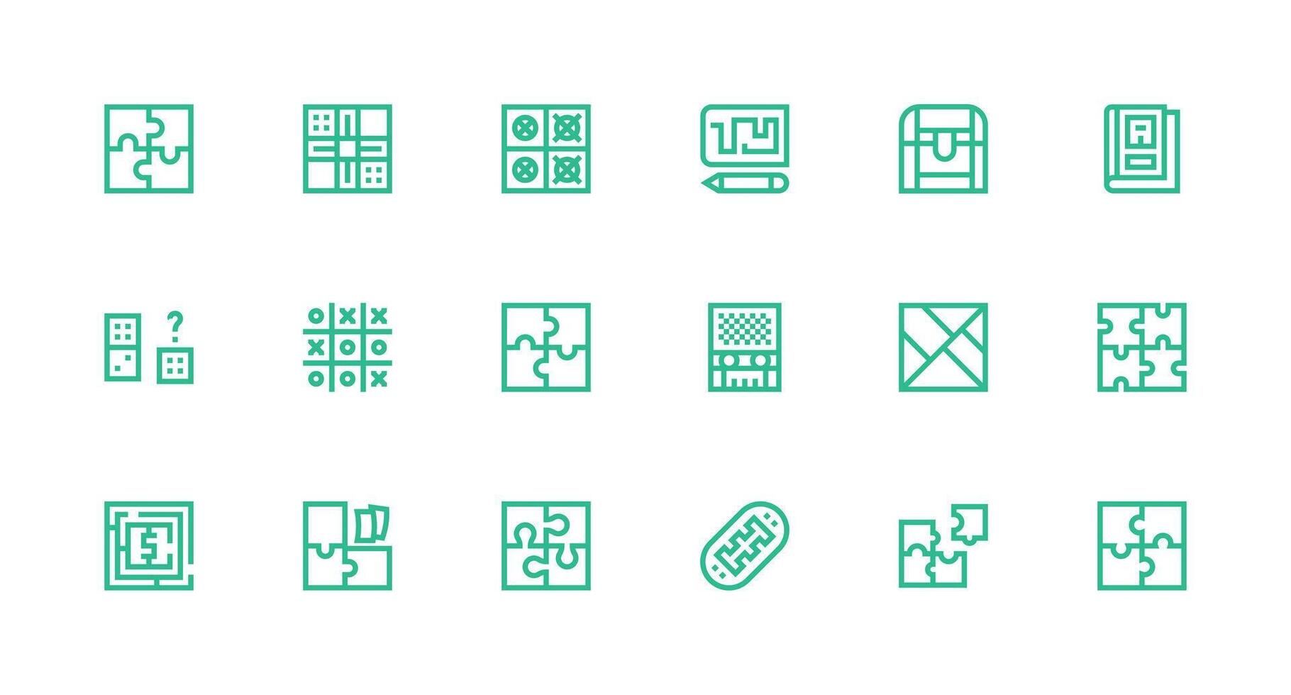 Puzzle Icon Collection with 18 Strong Stroke Line Designs Neatly Designed Icons for Web Platforms Free Vector