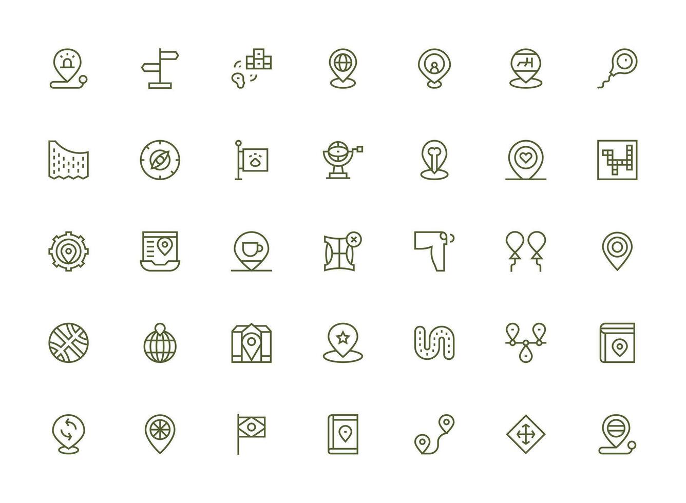 Map Design Icons featuring 35 in Regular Clean Line Style Neatly Designed Icons for Web Platforms vector