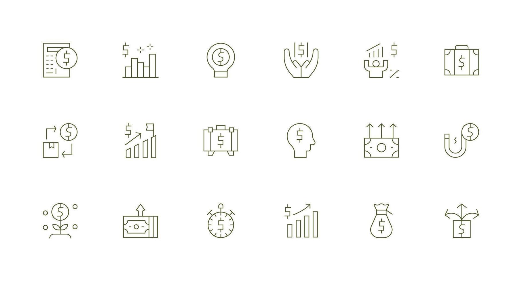 Earnings Design Icons featuring 18 in Minimal Line Style Web and App Icon Pack Collection Free Vector