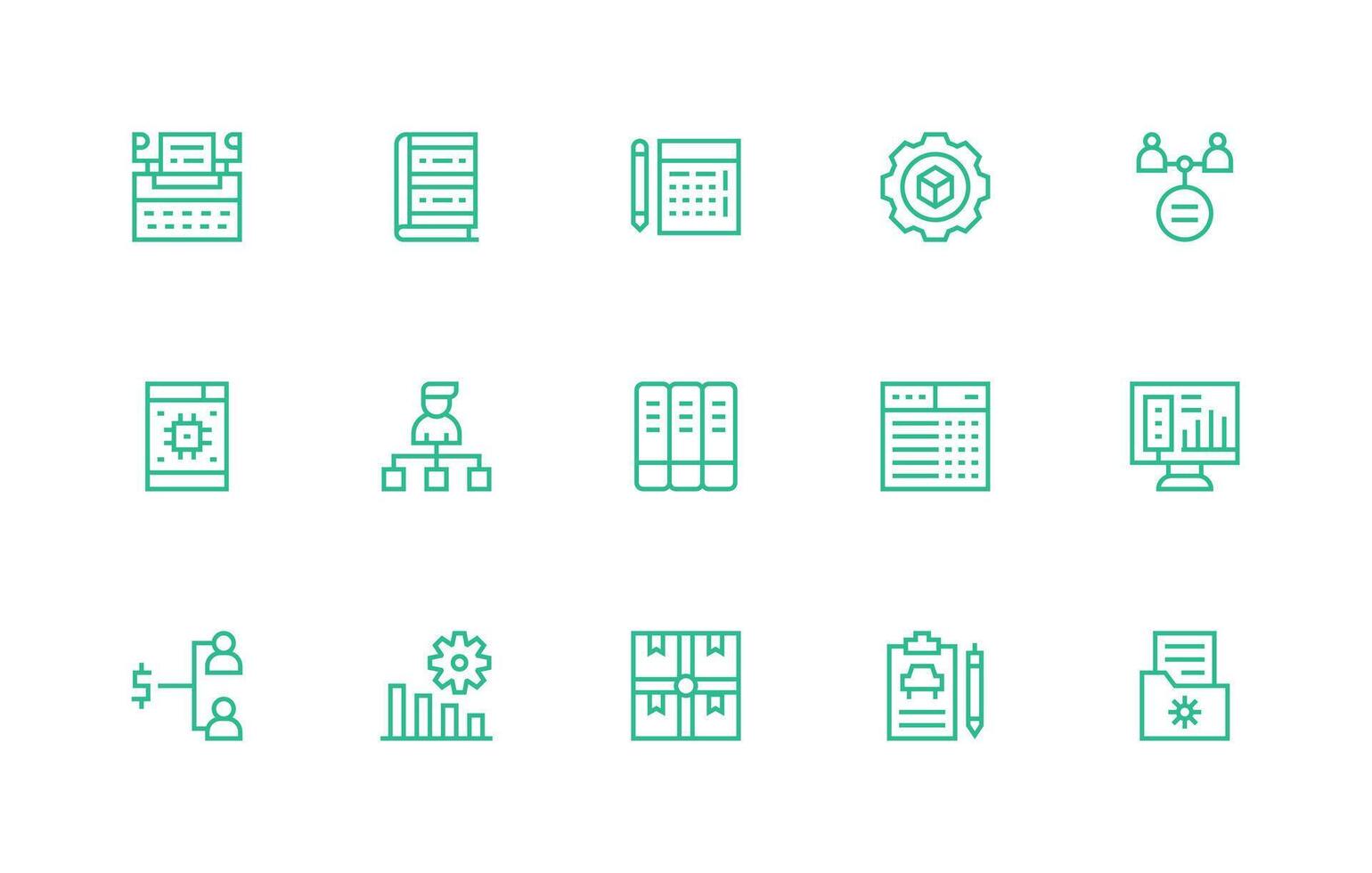 Management Icon Set with 15 Regular Line Graphics Design Ready Icon Set for Teams vector