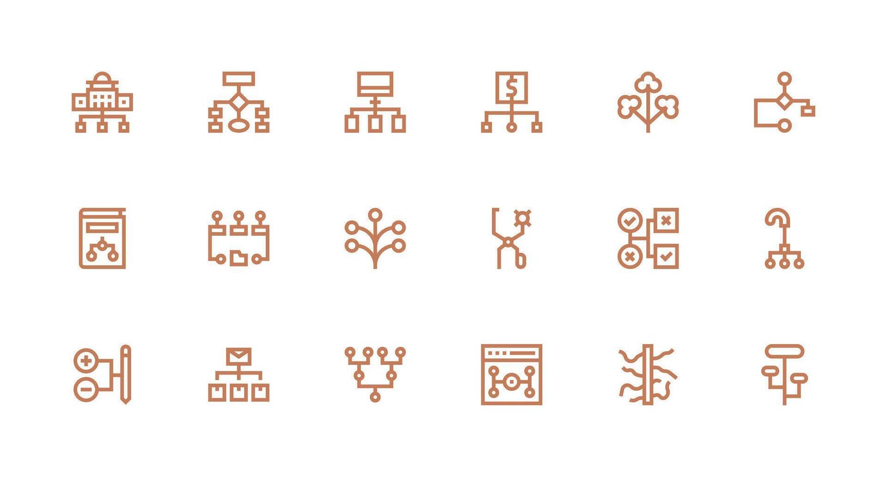 18 Strong Stroke Line Style Icons from Branching Collection Clean Icon Set Icon Pack for UI Projects Free Vector