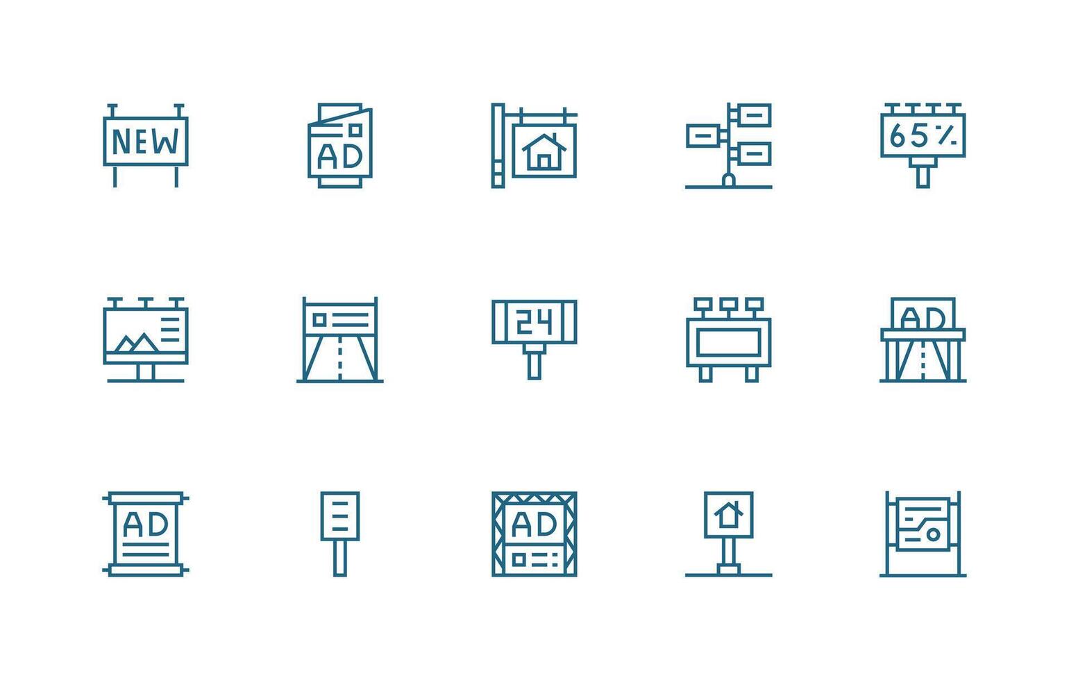 Billboard Design Icons featuring 15 in Regular Line Style Sharp Icons for Presentations vector