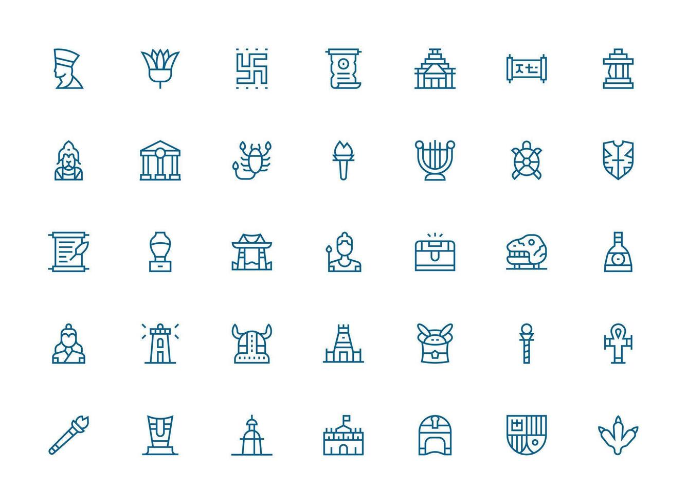 Ancient Set with 35 Regular Clean Line Icons Full Icon Library for UI Designers Free Vector