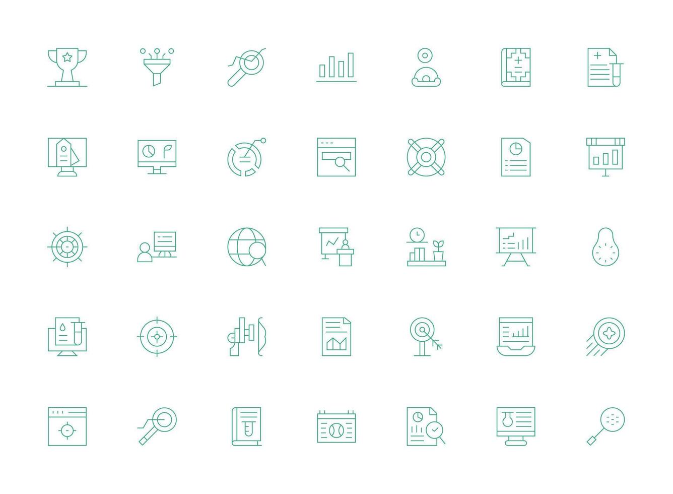 Results Icon Set with 35 Light Line Graphics Complete Icon Bundle for Web Design Free Vector