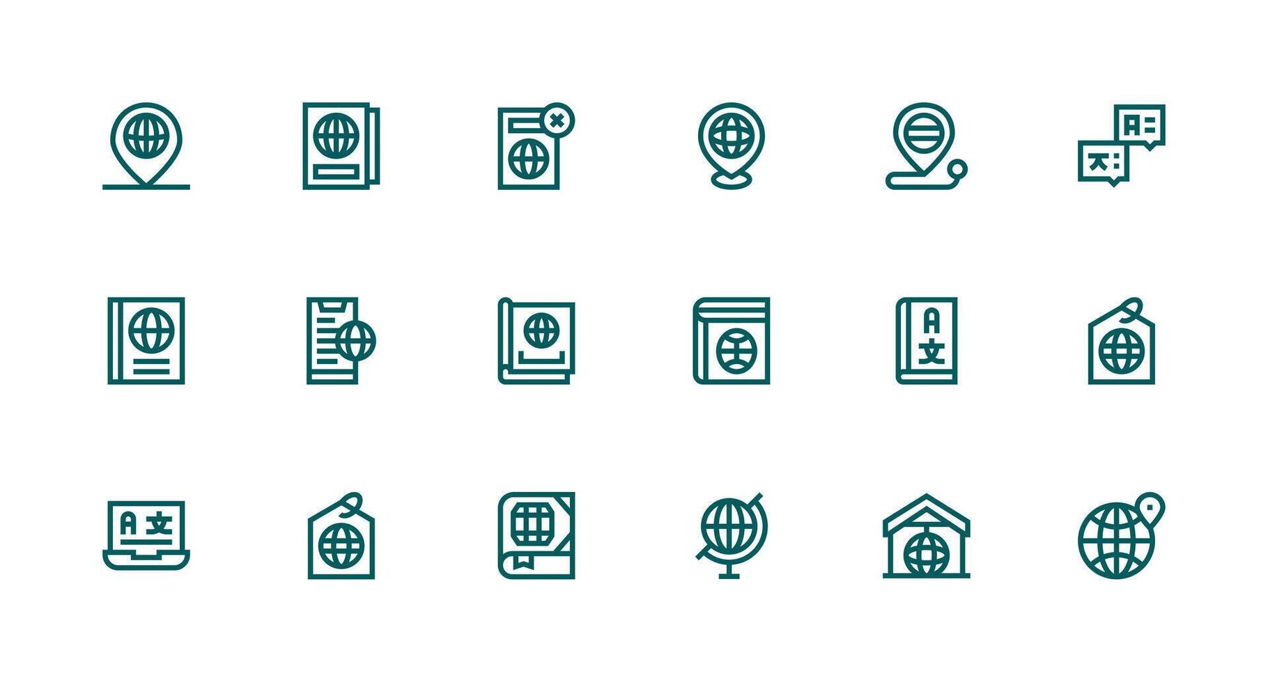Strong Stroke Line Style Foreign Icons with 18 Vectors Balanced Icon Set for Functional Design