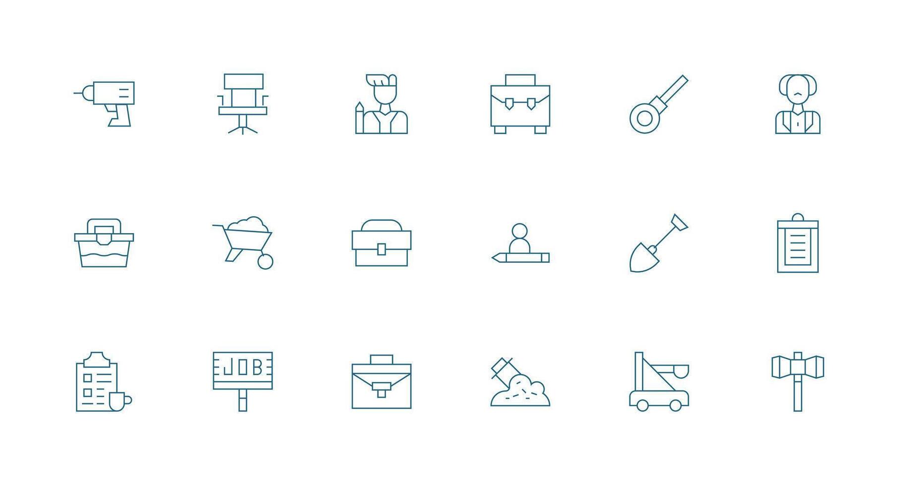 Work Design Icons featuring 18 in Minimal Line Style Flat Icon Set vector