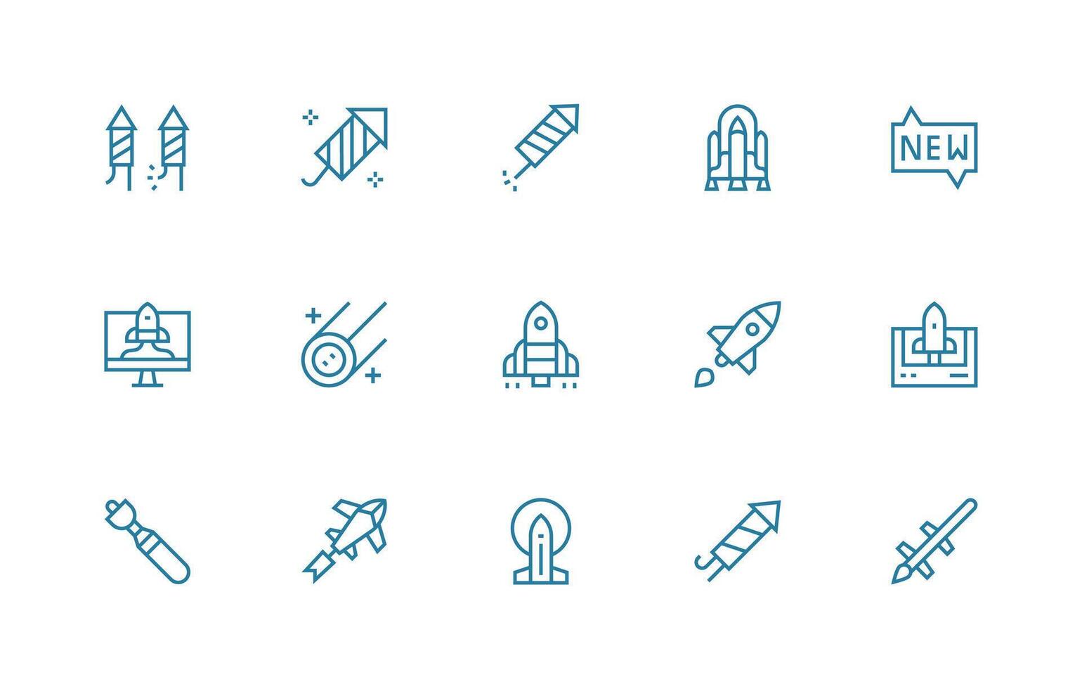 Launch Visual Pack containing 15 Regular Line Icons Multi-Purpose Icon Set vector