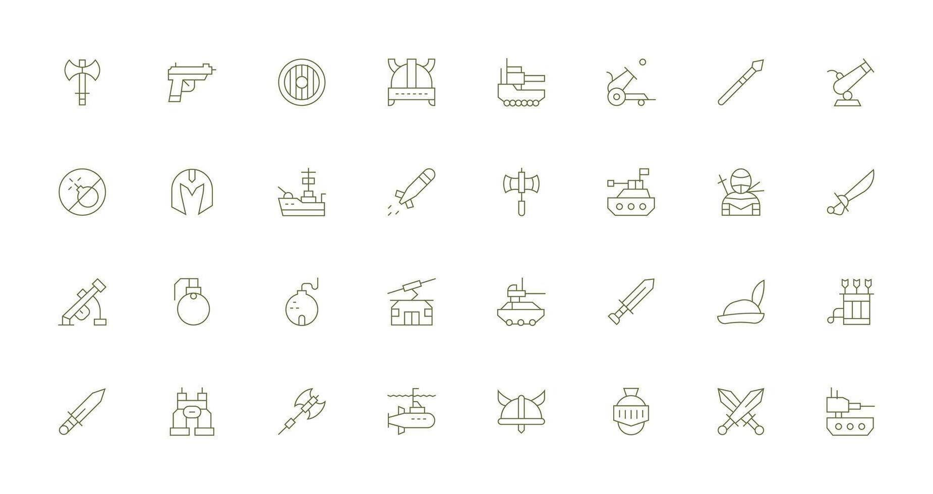 Warfare featuring 32 Icons in Thin Line Design Minimal Icon Set for Interface Projects vector