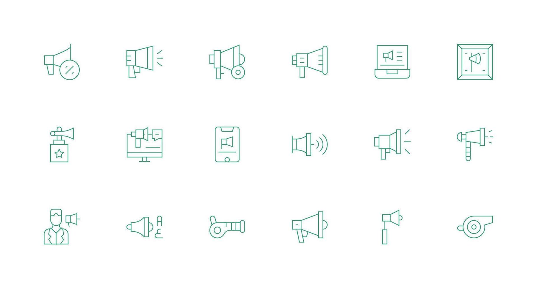 Megaphone Set with 18 Minimal Line Icons Editable Icon Collection Free Vector