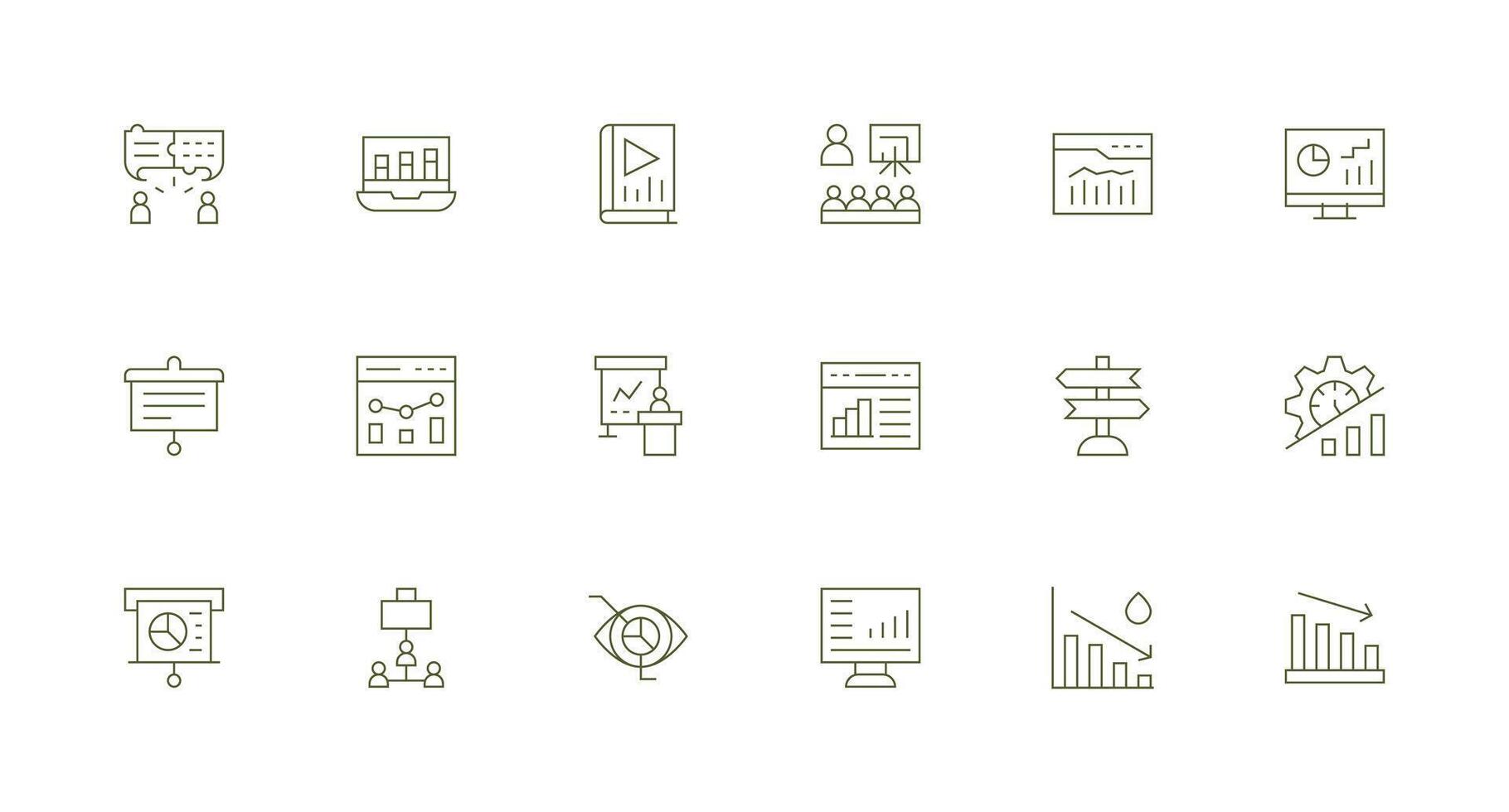 Charts Design Icons featuring 18 in Minimal Line Style Display Icon Pack vector