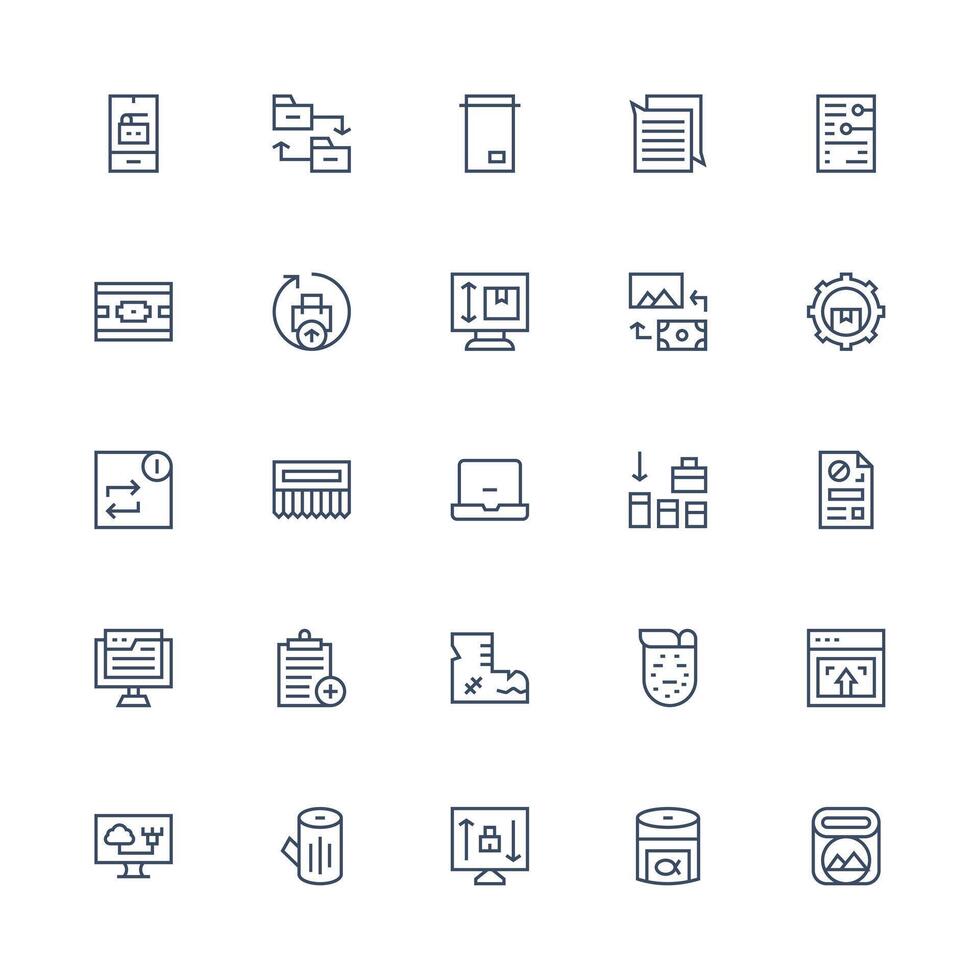 File Management Icon Set with 25 Medium Stroke Outline Graphics Digital Icon Collection Free Vector