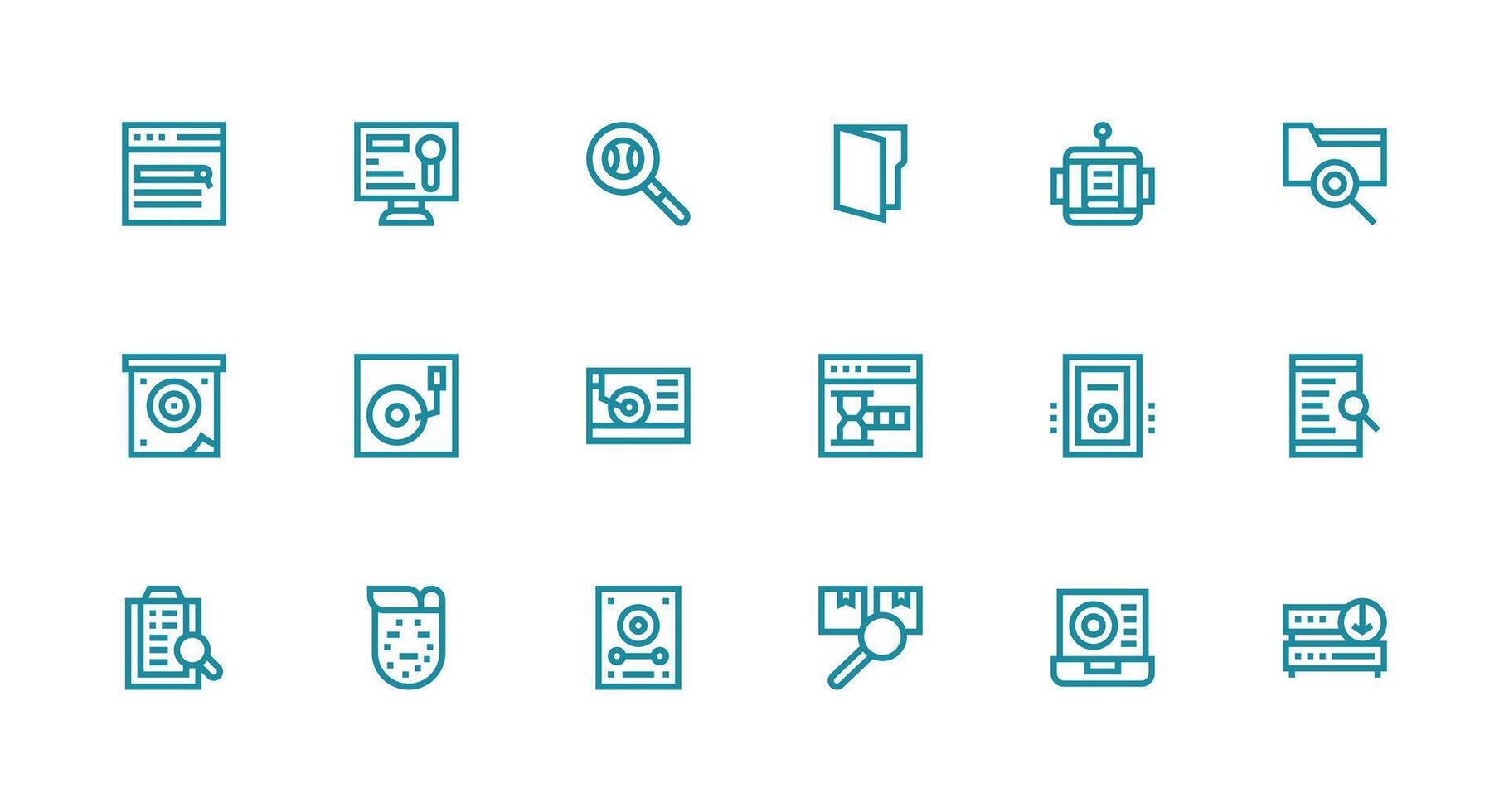 Retrieve featuring 18 Icons in Strong Stroke Line Design Interface Icons for Daily Use vector