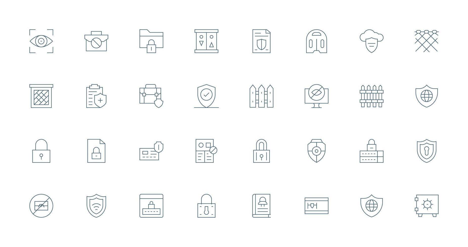 Privacy Icon Set with 32 Thin Line Graphics Balanced Icon Set for Functional Design vector
