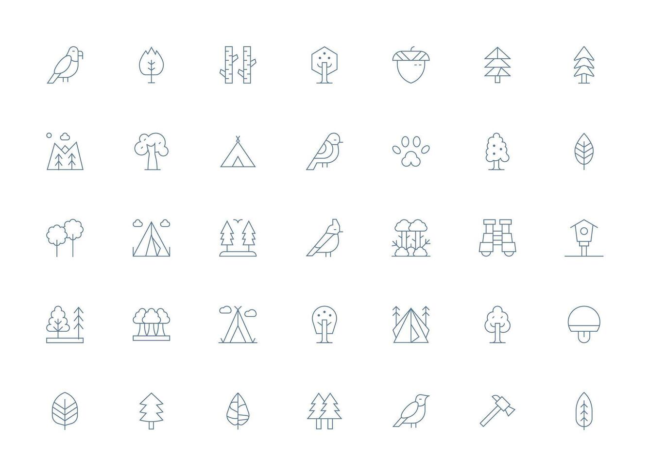 Light Line Icons from Forest Set with 35 Vectors High-Resolution Icons for Any Platform Free Vector