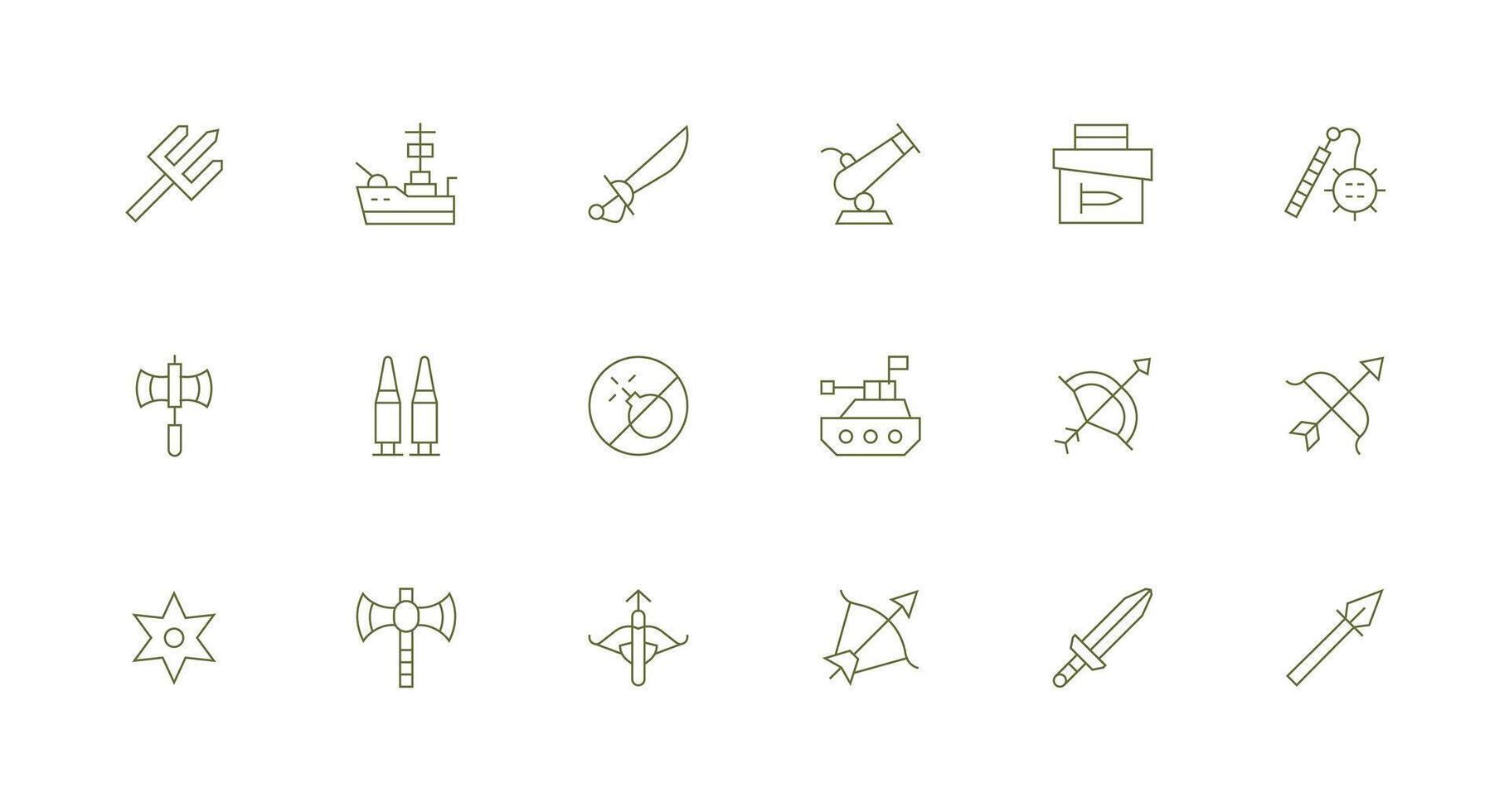 Weapon Icon Collection with 18 Minimal Line Designs Neat Icon Set vector