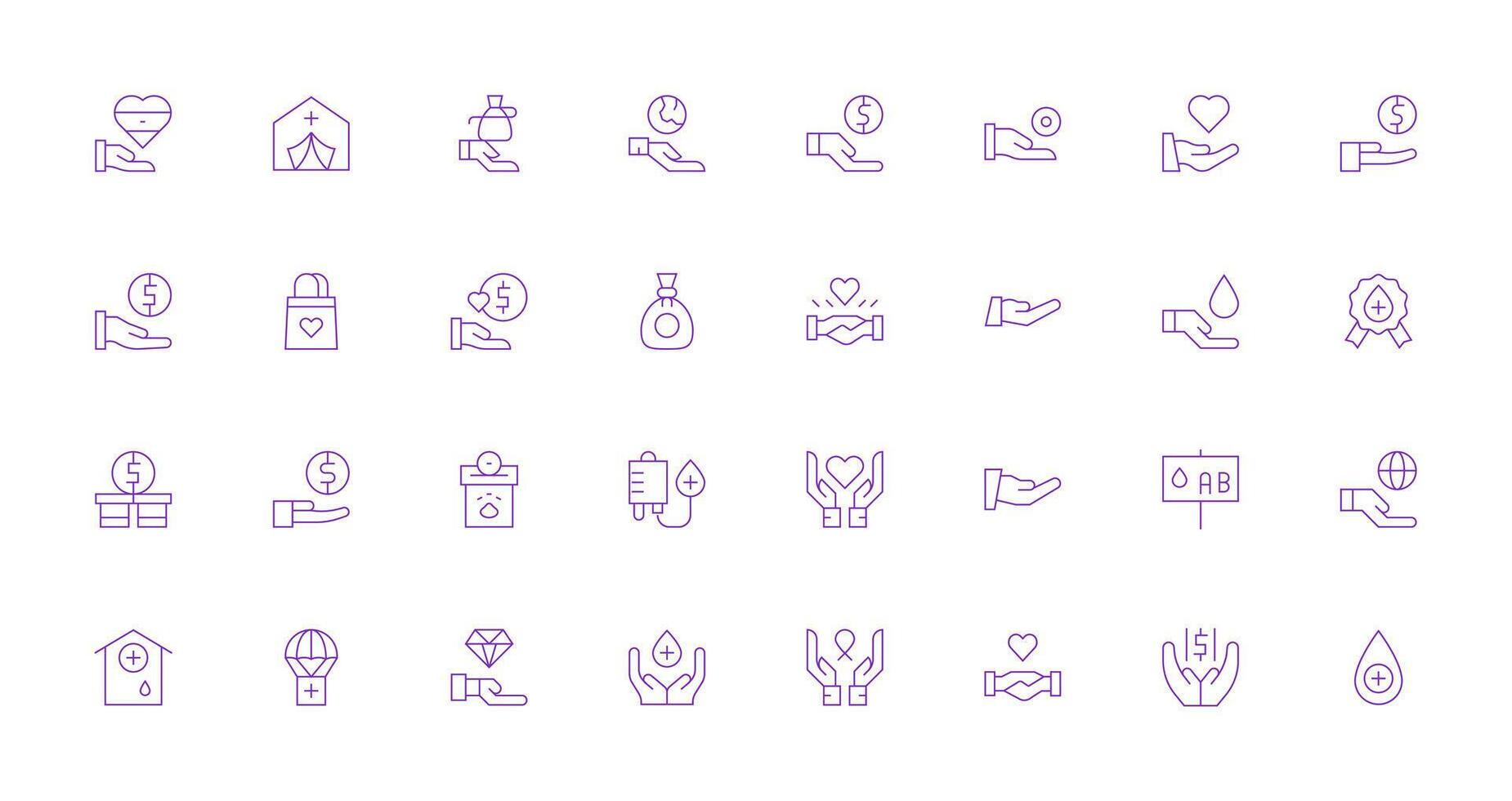 Donation Icon Set with 32 Thin Line Graphics General Use Icon Pack vector