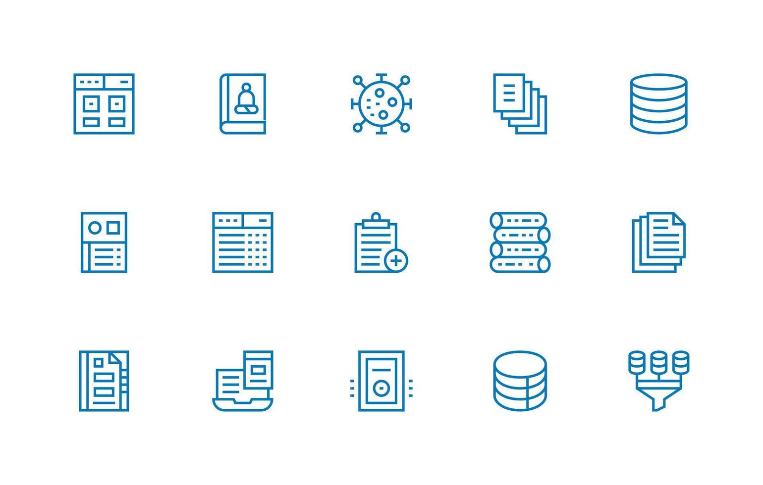 Information Management Icon Collection with 15 Regular Line Designs All Device Compatible Icon Set vector