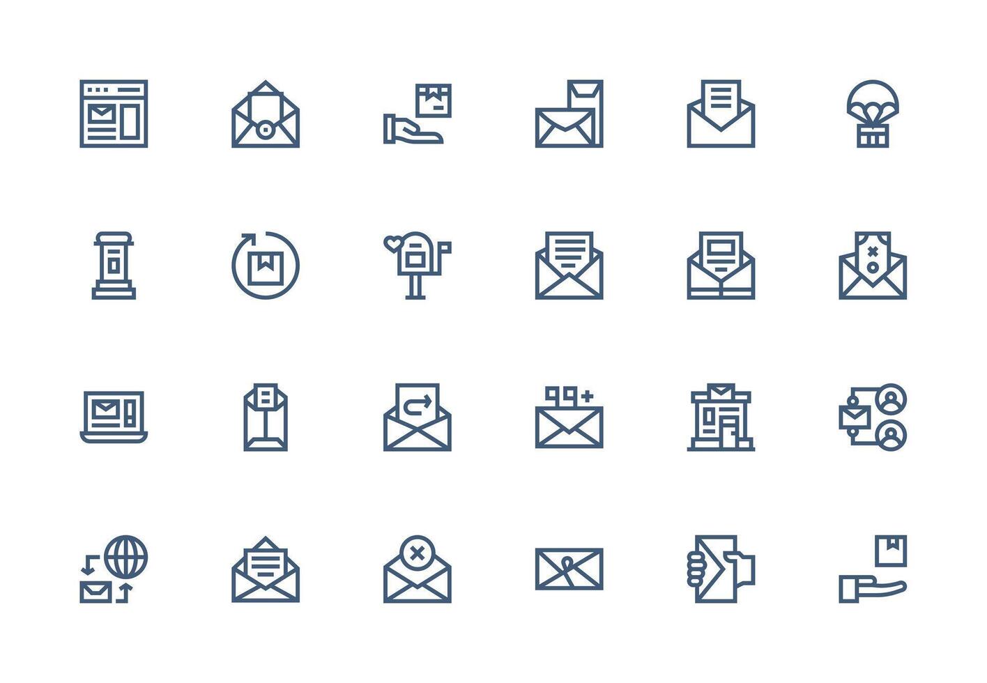 Mail Design Icons featuring 24 in Thick Line Line Style Design Ready Icon Set for Teams Free Vector