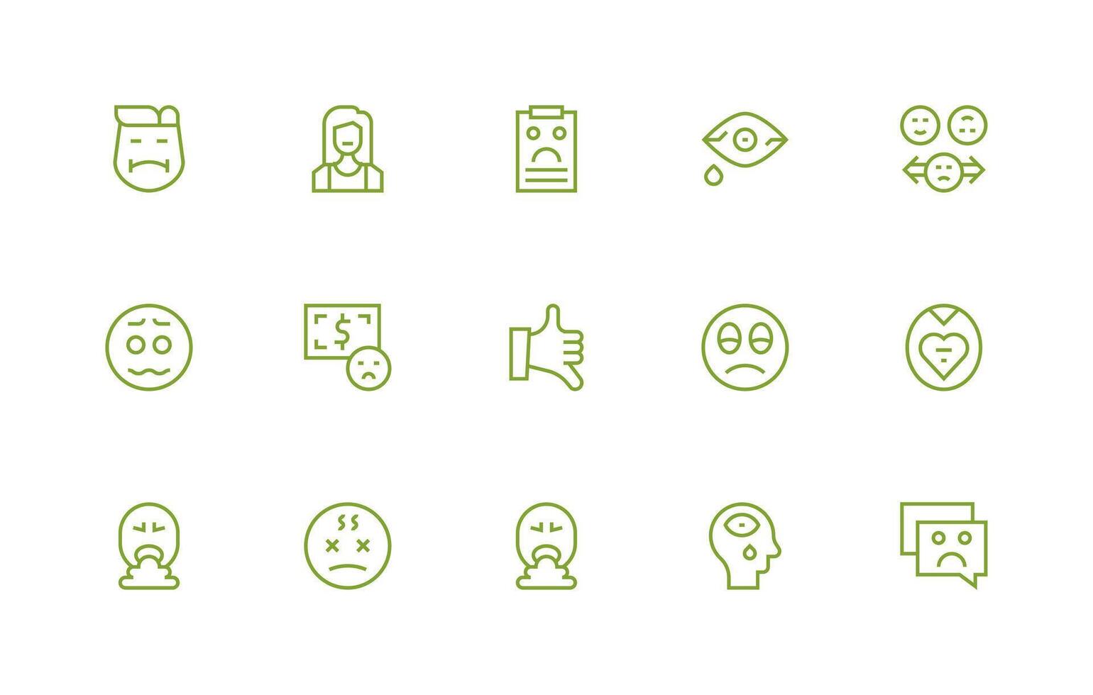 15 Regular Line Icons for Unhappy Graphics UI-Ready Icon Collection Free Vector