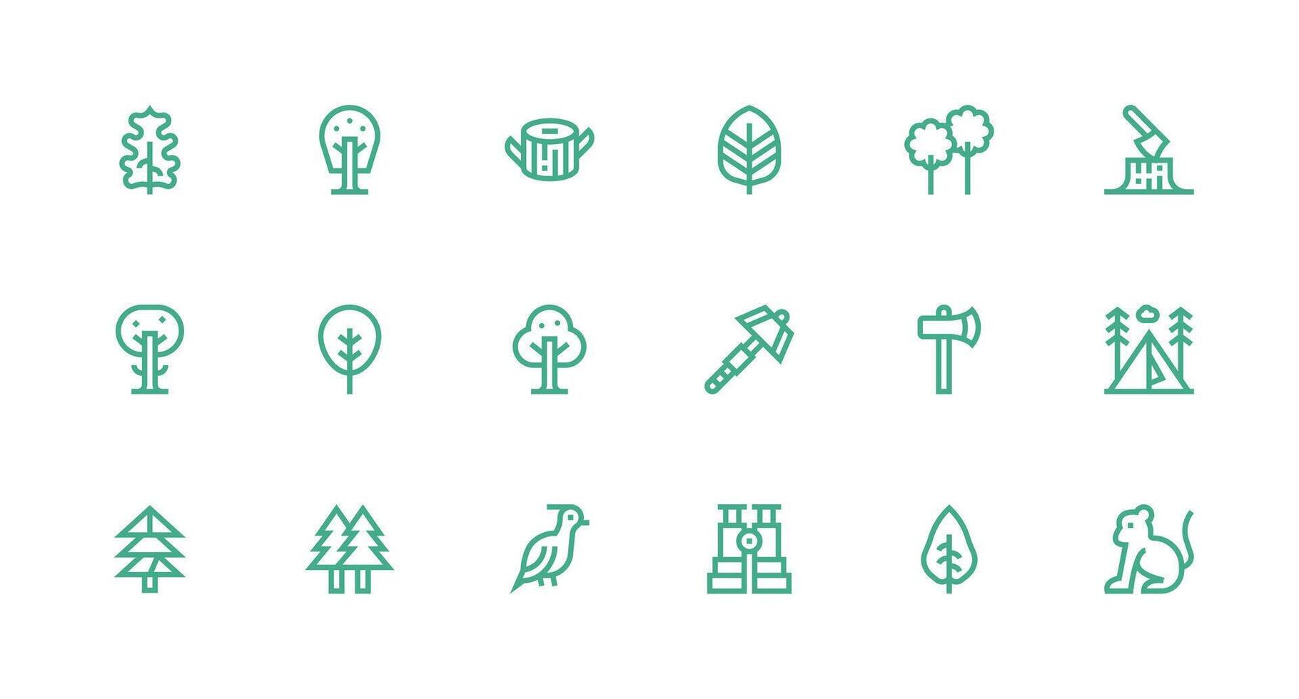 Strong Stroke Line Style Forest Icons with 18 Vectors Clear and Concise Icon Set Collection