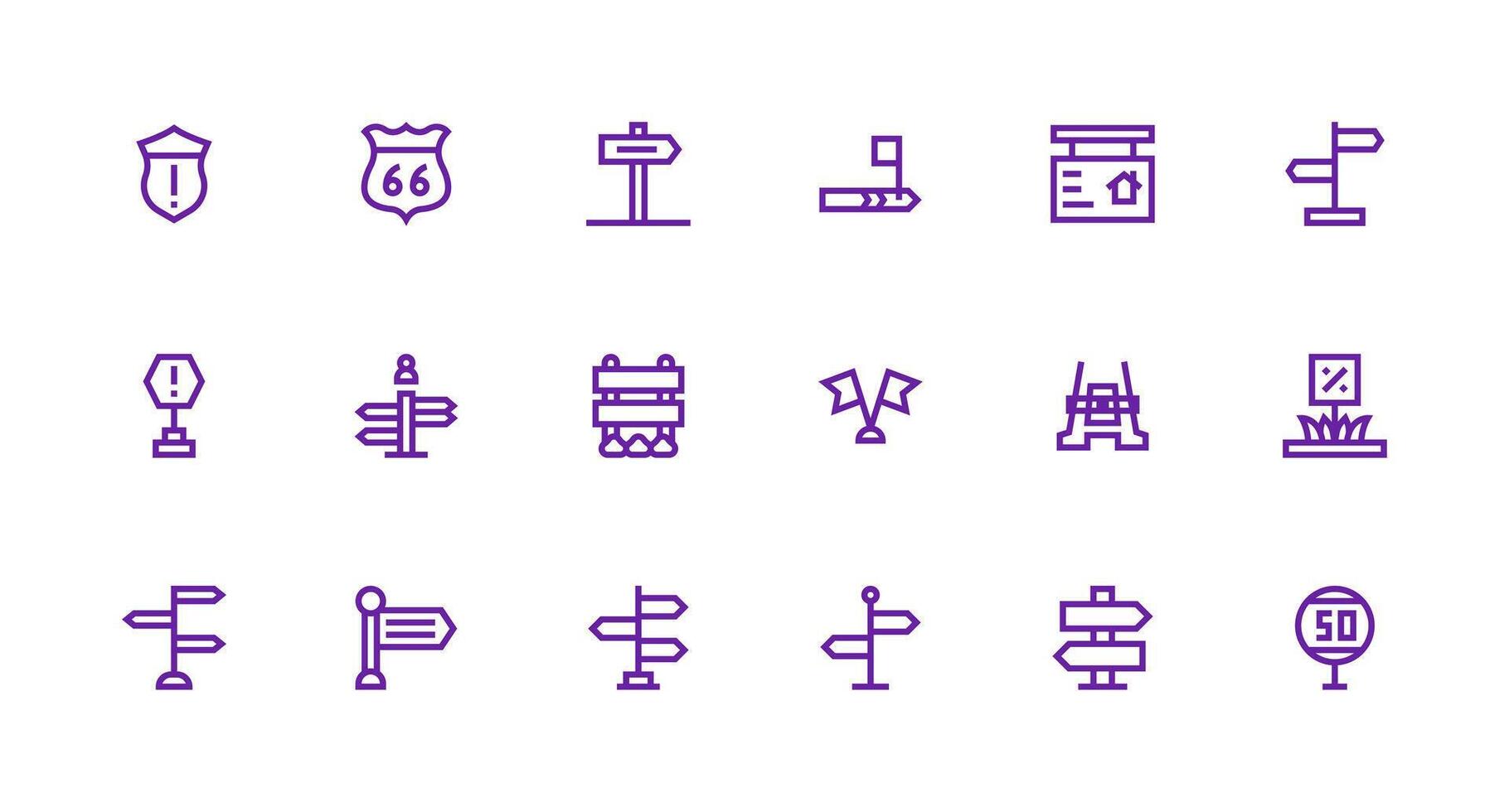 Strong Stroke Line Style Signpost Icons with 18 Vectors Functional Icon Series