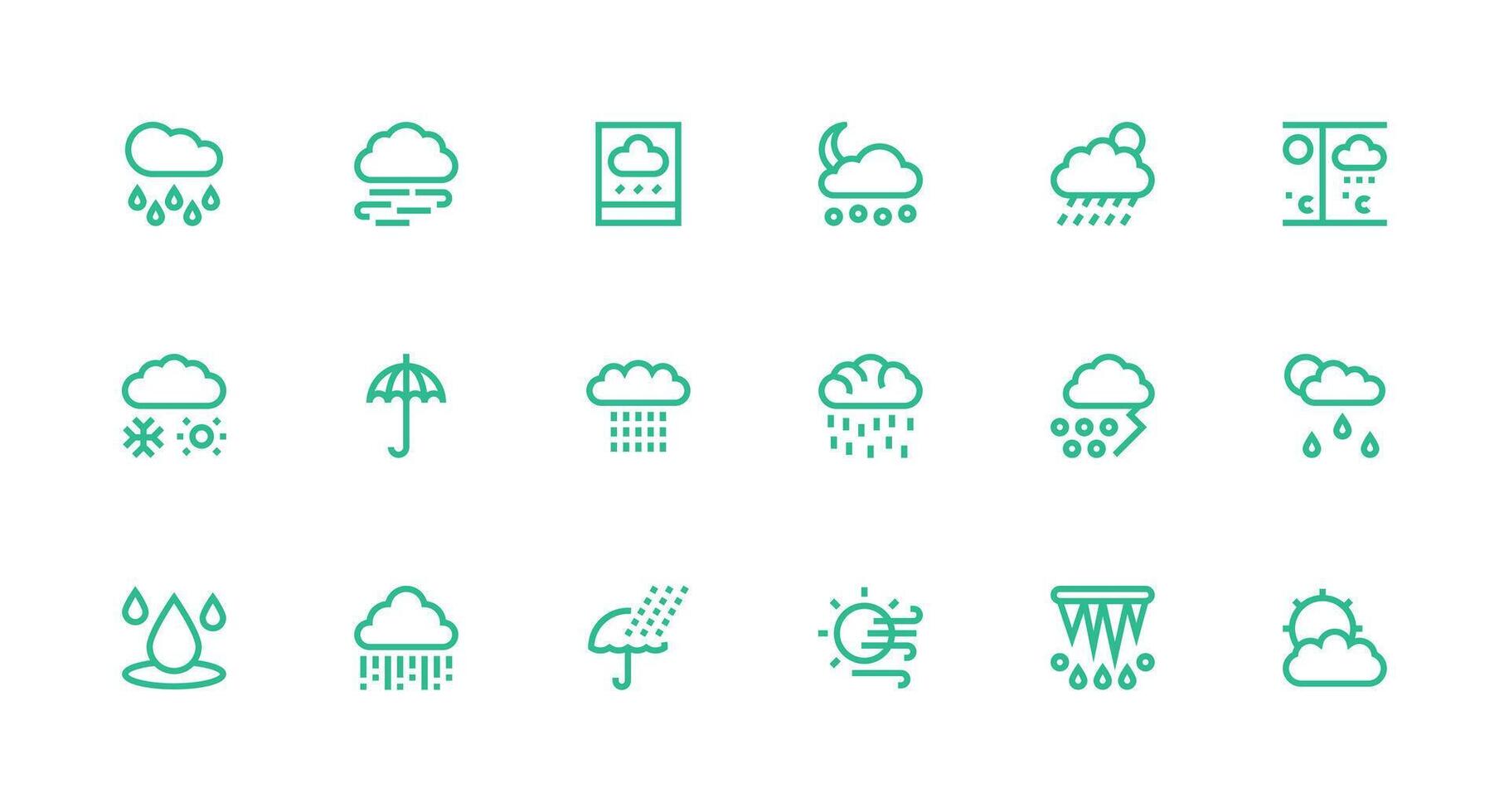 Rainy Icon Set with 18 Strong Stroke Line Graphics Scalable Icons for All Themes Free Vector