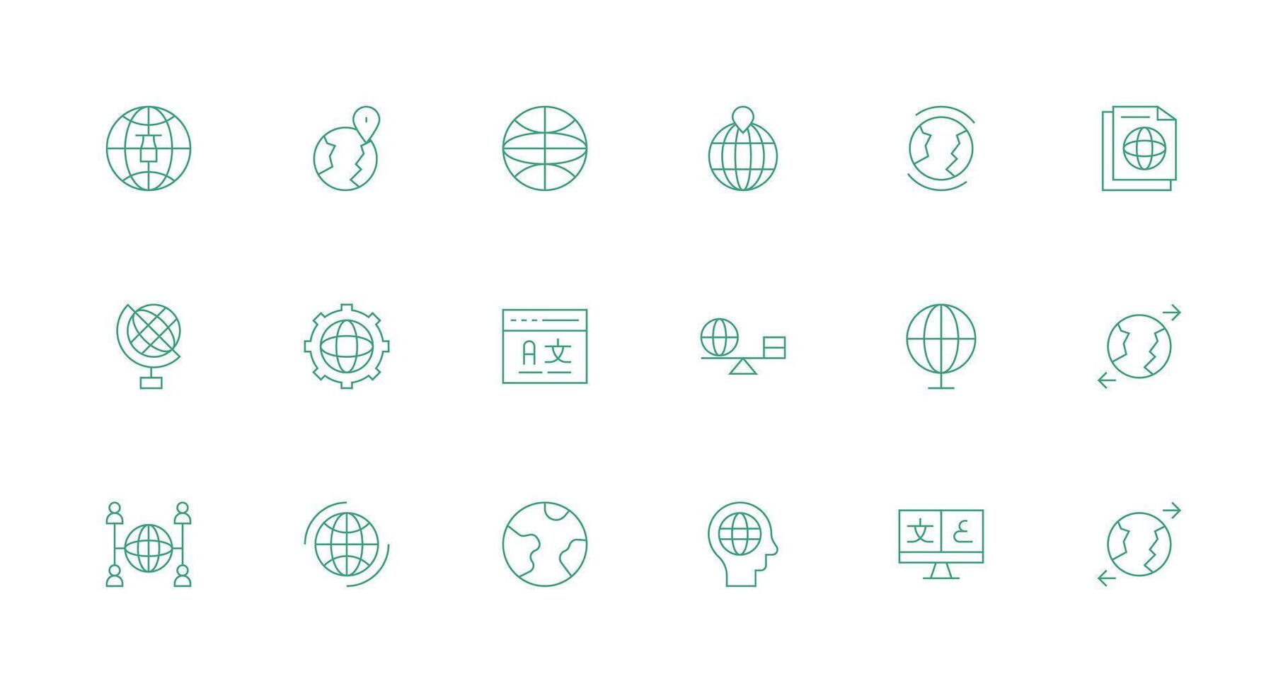 Internationalization Set with 18 Minimal Line Icons Fully Editable Icon Set for Web Free Vector