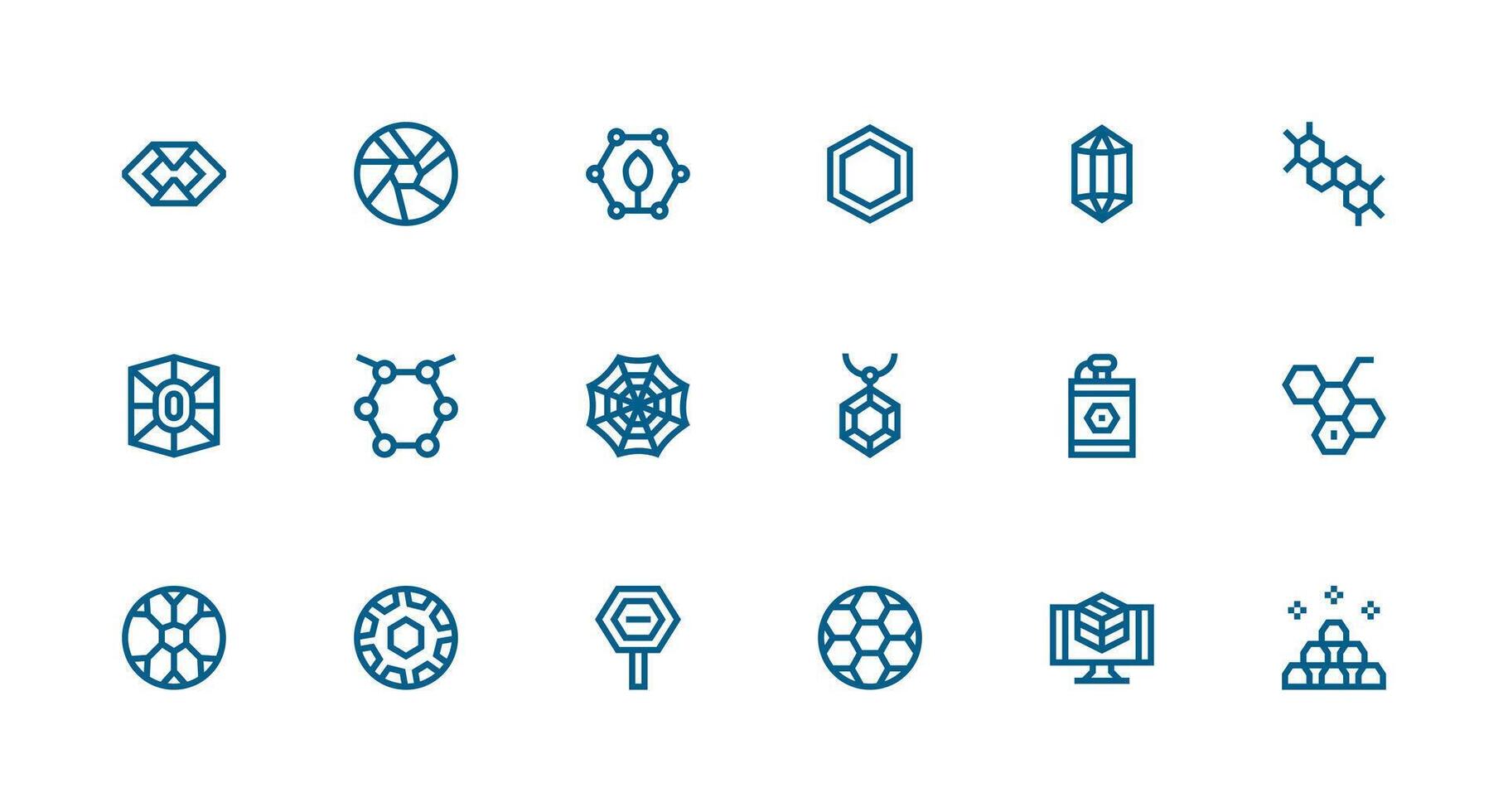 Strong Stroke Line Icons from Hexagon Set with 18 Vectors Functional Icon Series Free Vector