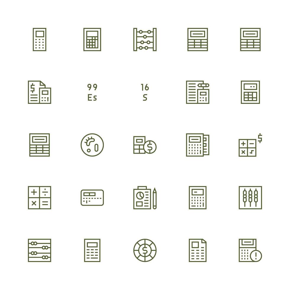 25 Icons for Calculation in Medium Stroke Outline Format Scalable Icons for All Themes vector