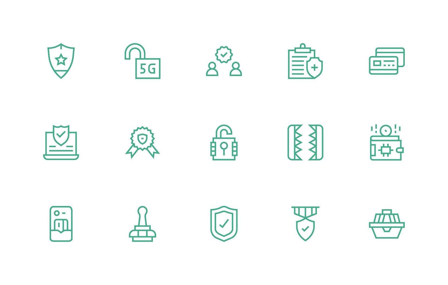 Secure Design Icons featuring 15 in Regular Line Style Compact Icon Set vector