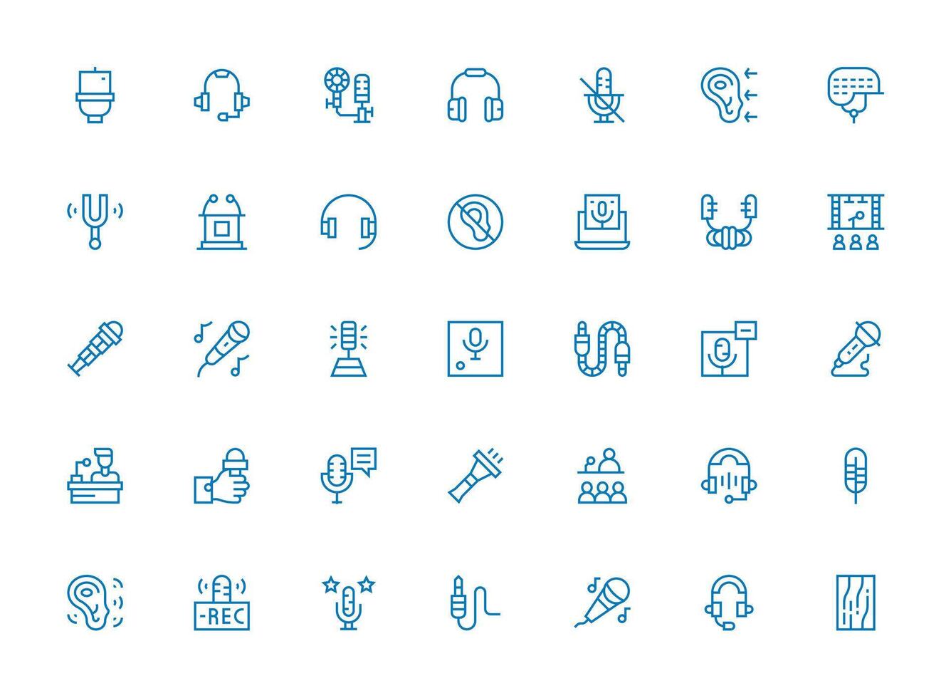 Microphone Visual Pack containing 35 Regular Clean Line Icons Neatly Designed Icons for Web Platforms vector