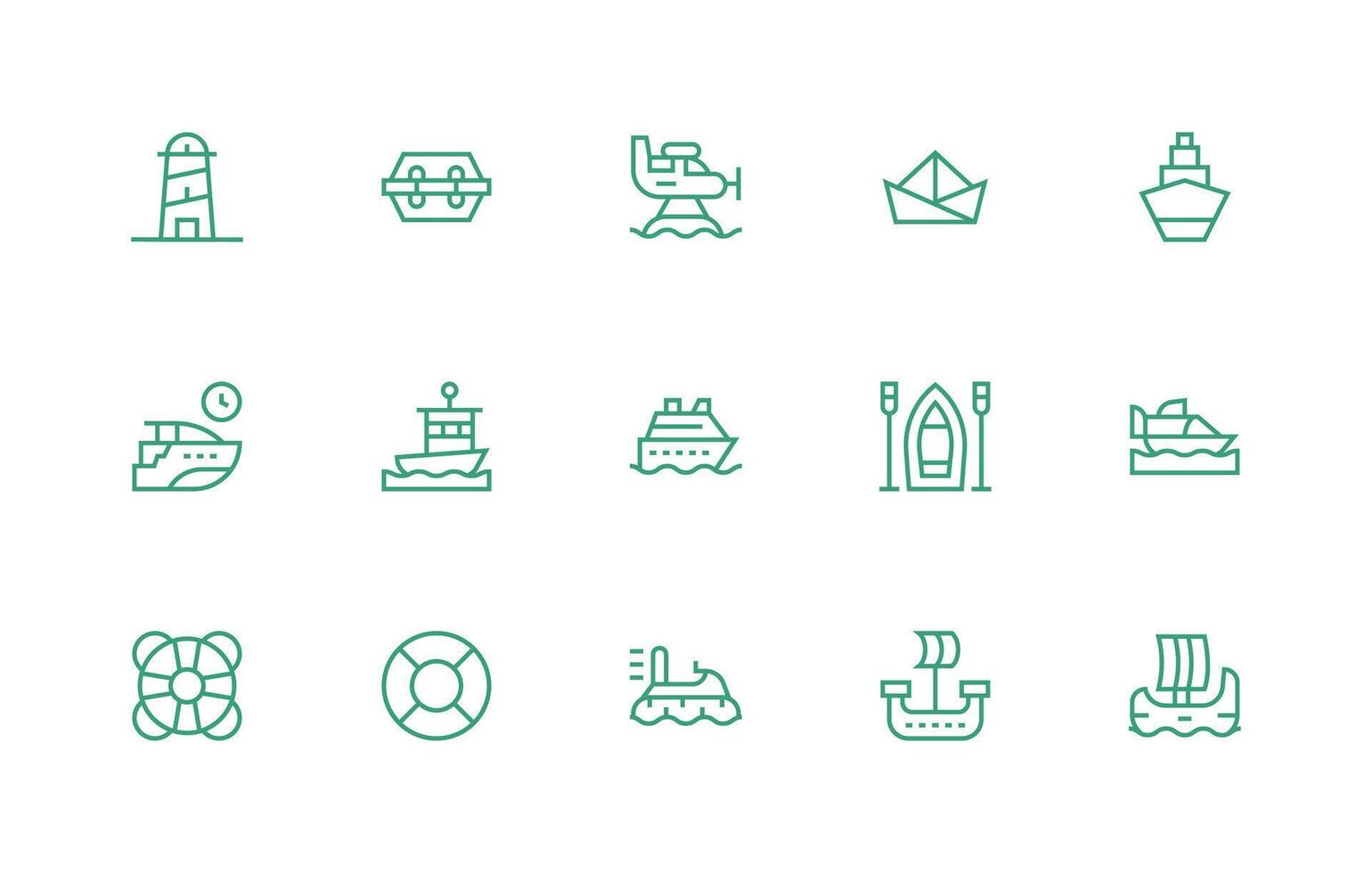 Boat Design Icons featuring 15 in Regular Line Style Web Icon Collection vector