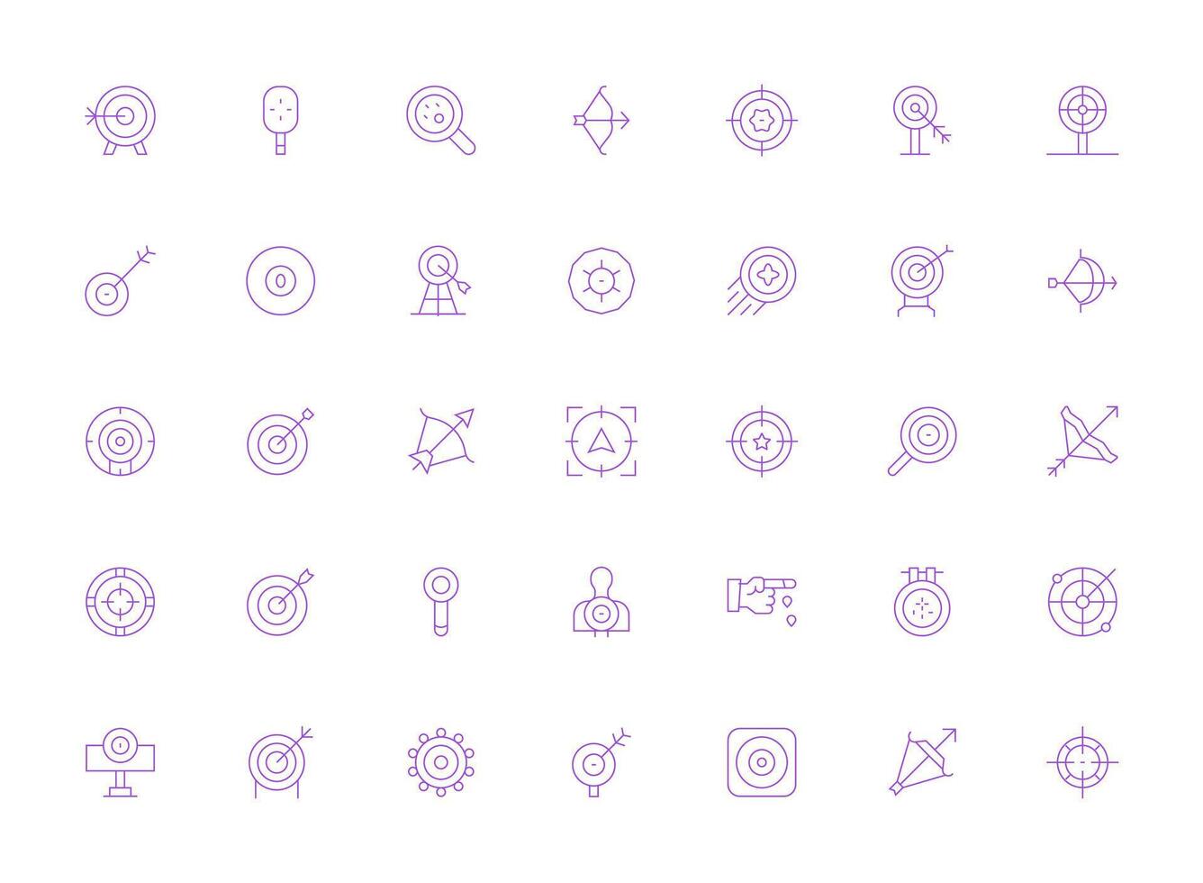 Aim Icon Set with 35 Light Line Graphics Customizable Icon Series for Mobile Screens vector