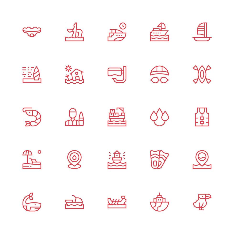 25 Icons for Ocean in Medium Stroke Outline Format Sharp Icons for Presentations vector