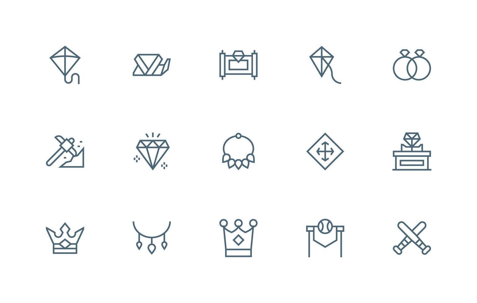 Diamond featuring 15 Icons in Regular Line Design Essential Icon Set for Teams vector