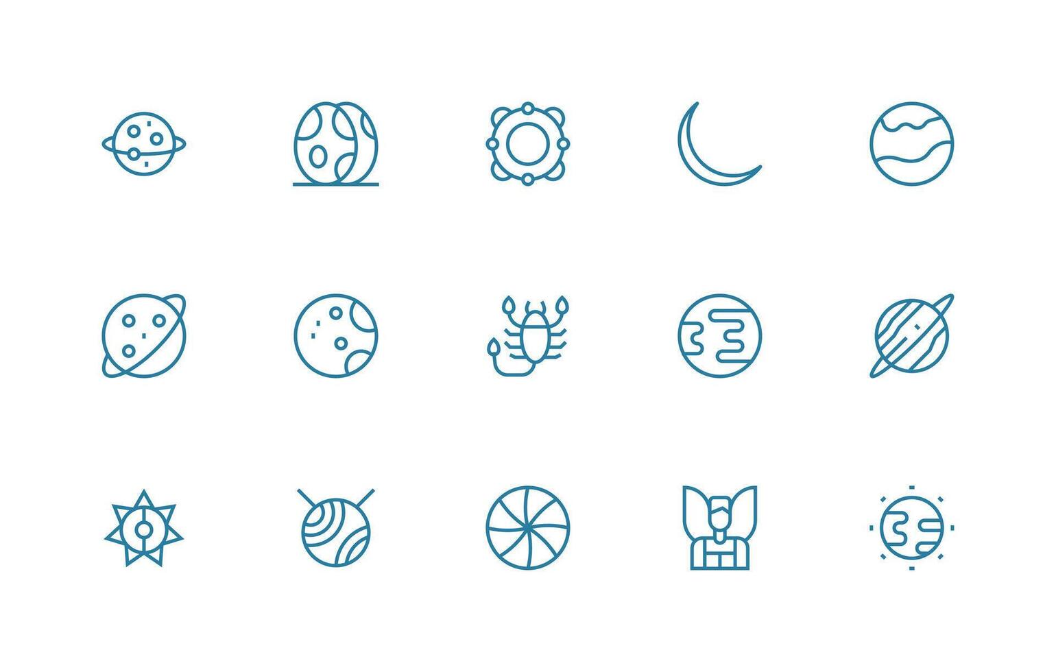 15 Icons for Celestial in Regular Line Format Quick Access Icons for UI Development vector