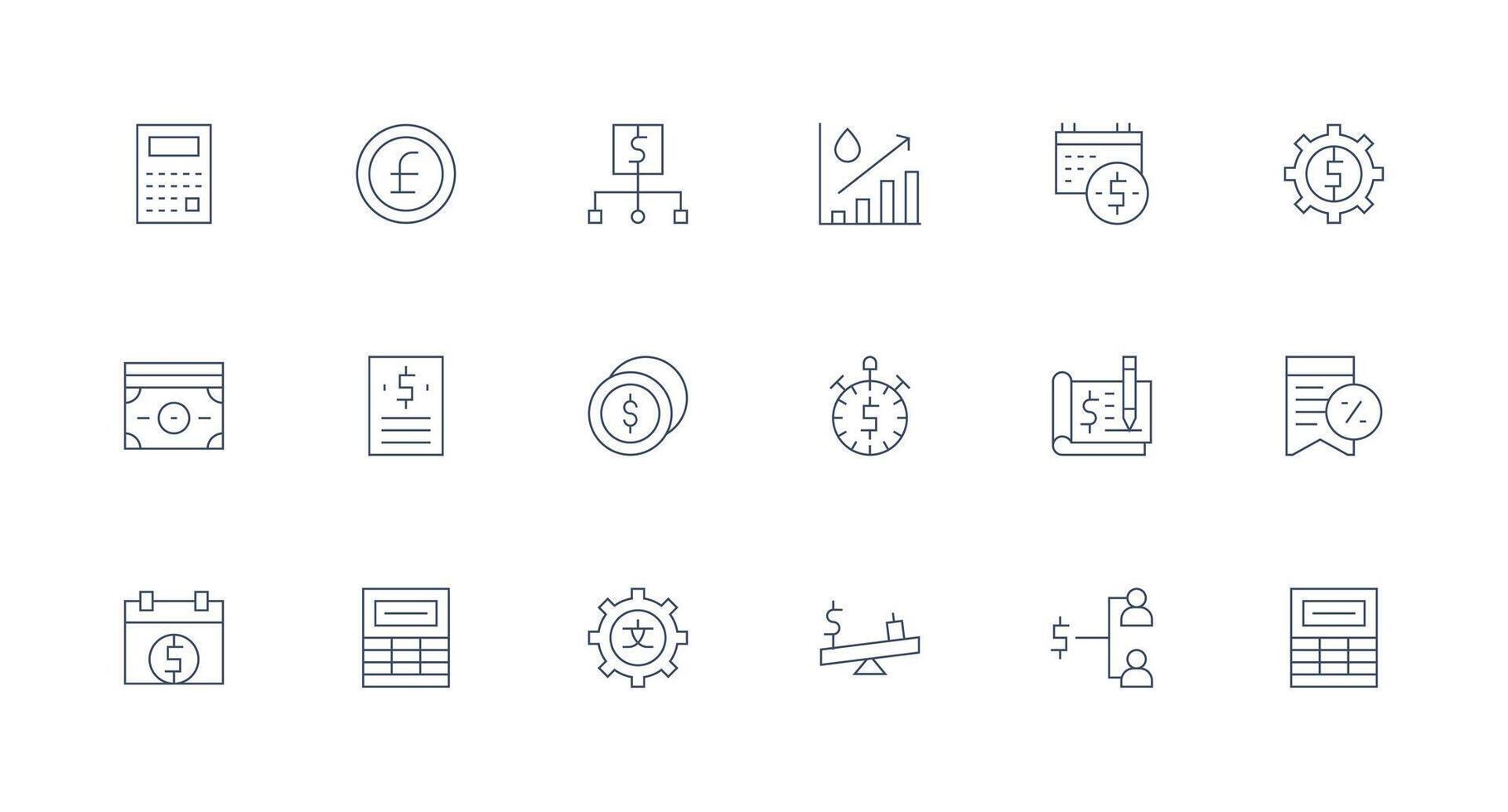 Minimal Line Style Cost Icons with 18 Vectors Minimal Icon Set for Interface Projects