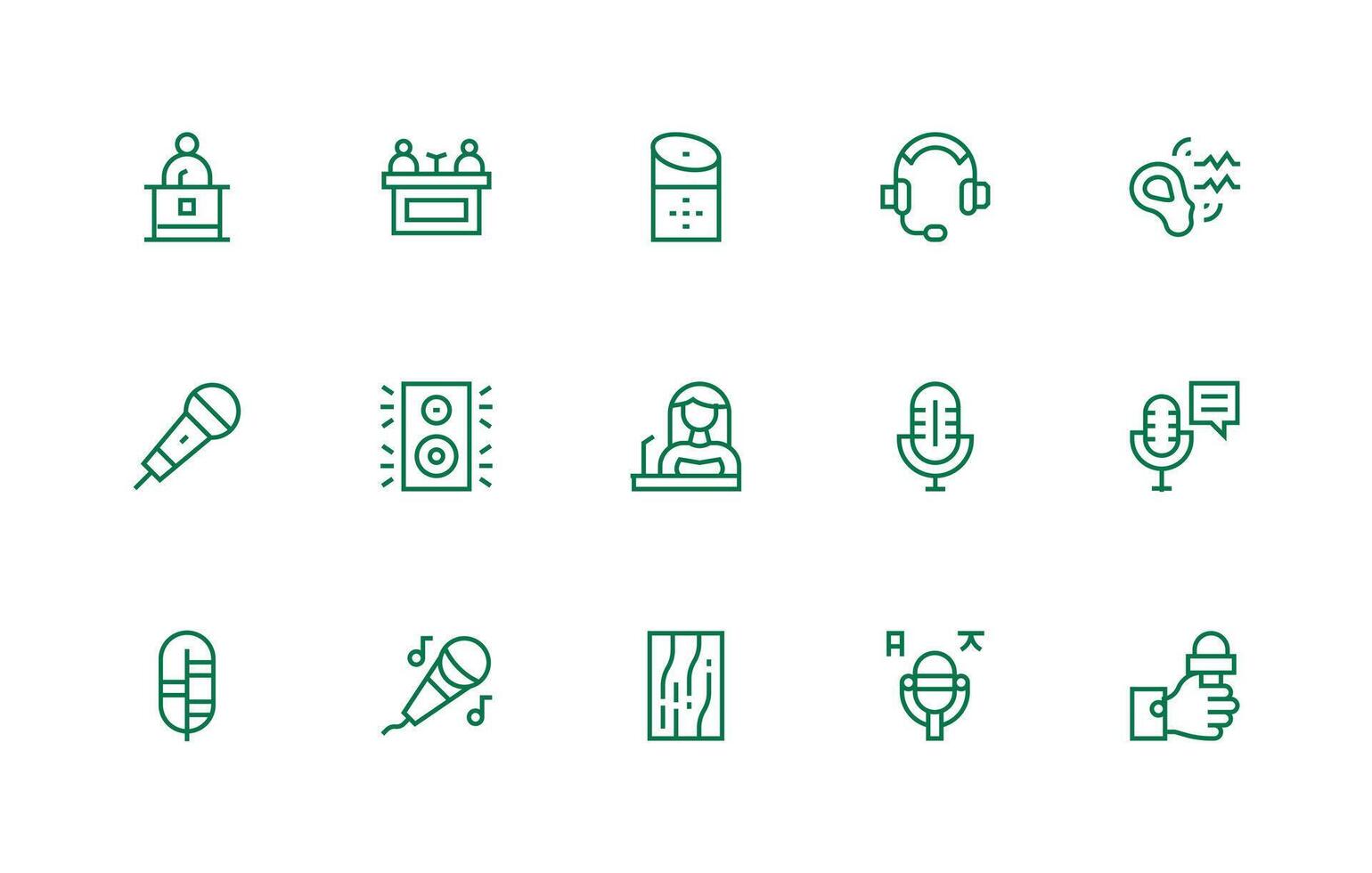 Microphone Icon Set with 15 Regular Line Graphics All Device Compatible Icon Set Free Vector